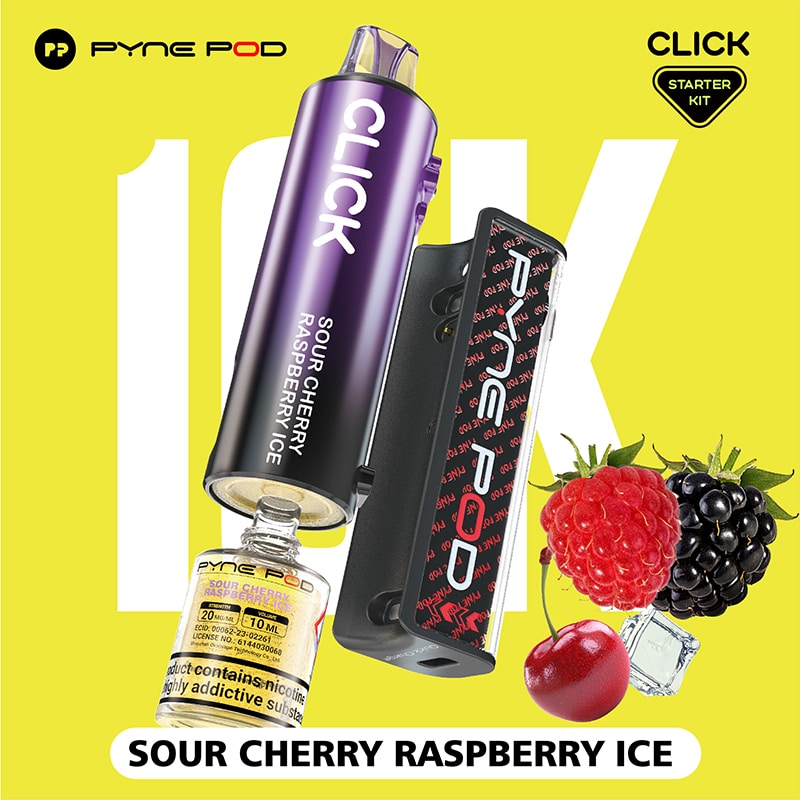 Pod Salt Pyne Click 10,000 Puffs – 10+2ml – SOUR CHERRY RASPBERRY ICE